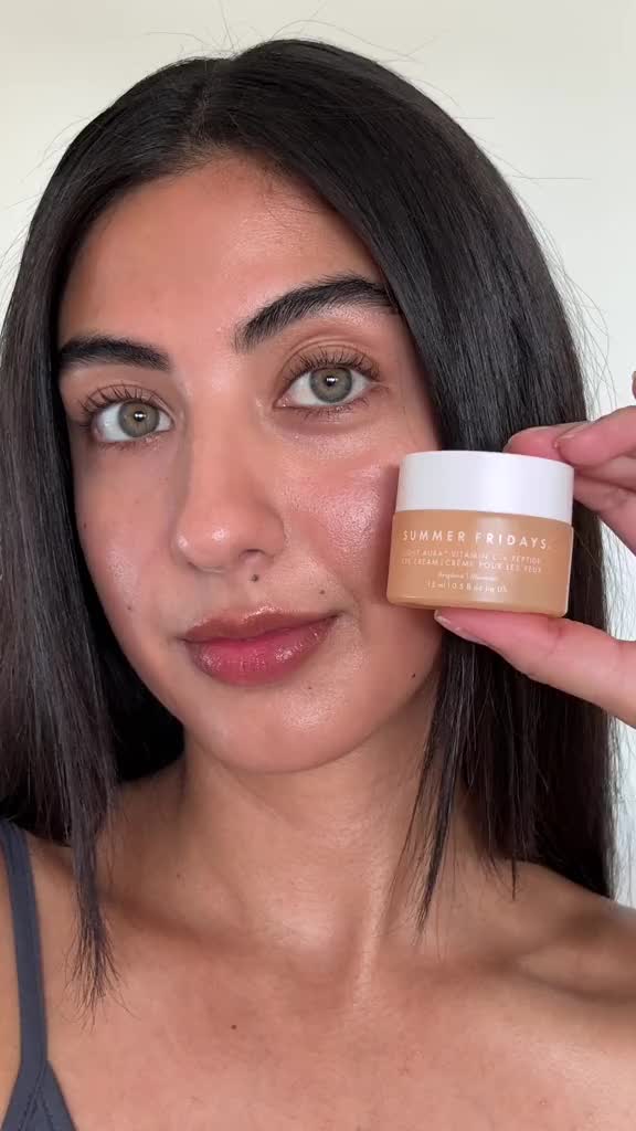 Start your mornings with Summer Fridays ☀️@Veronica applying Light Aura Vitamin C + Peptide Eye Cream and ShadeDrops Broad Spectrum SPF 30 Mineral Milk Sunscreen 🤍