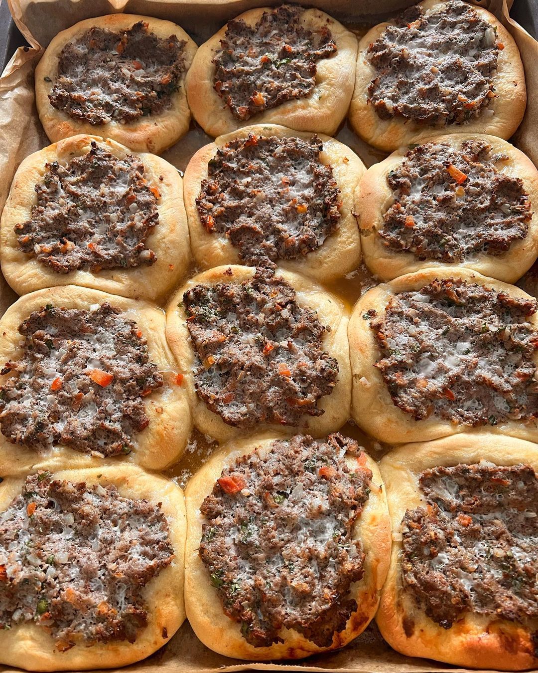 I was craving sfiha - a Palestinian lamb, tahini and tomato open pies for sometime and yesterday I couldn’t wait to get stuck in. They’re super easy to make and thanks to my sister Sawsan, the dough is a total bliss to work with. صفيحة فلسطينية بالطحينة والبندورة