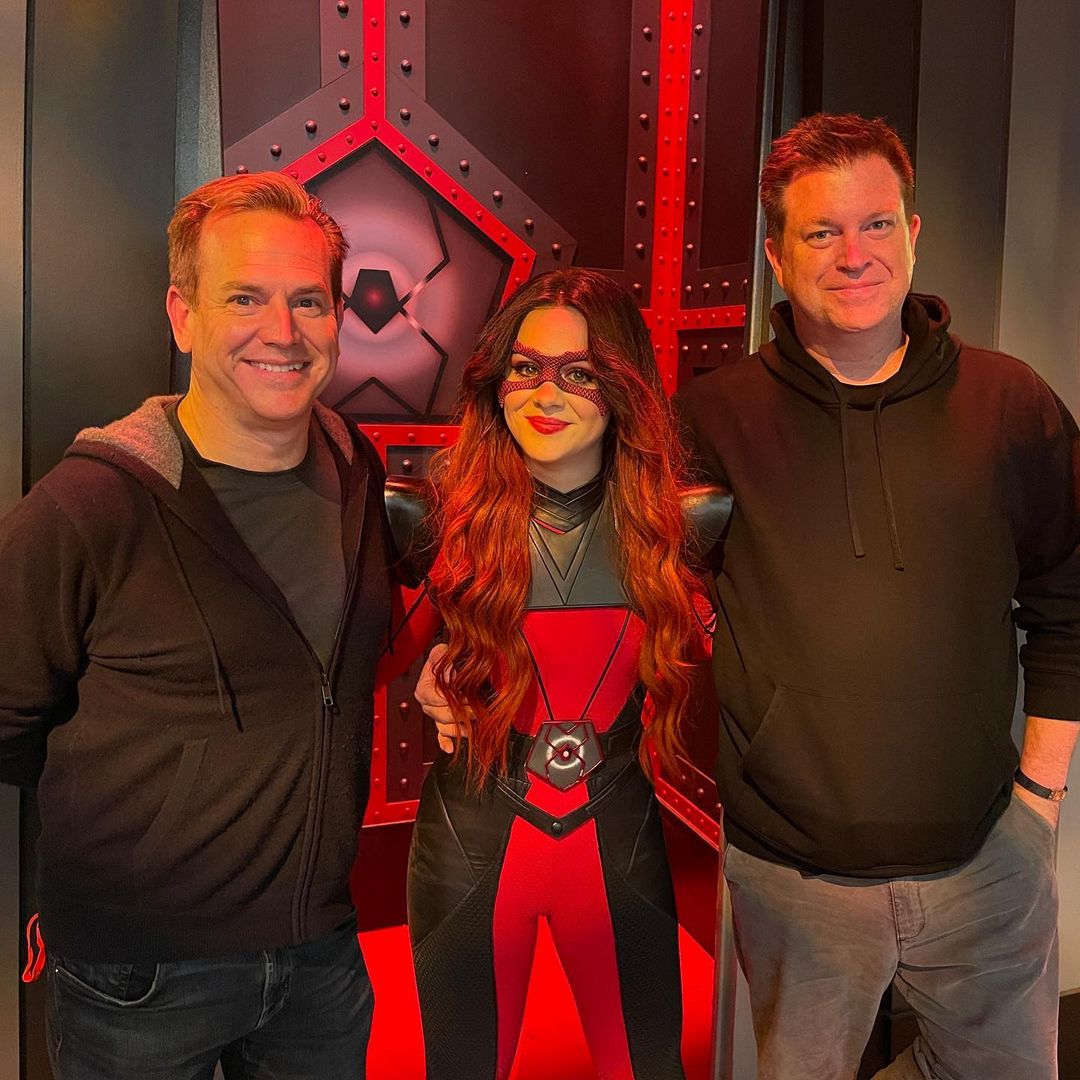 tomorrow our next batch of episodes drops on @disneyplus ♥️ when I got the audition for this show it was so out of my comfort zone of the things I was used to - having only done drama before - and choosing to do it was based on the amazing scripts written by @cpetey222 and @bryanwmoore ♥️ thank you for being my family away from London and always believing in me #villainsofvalleyview