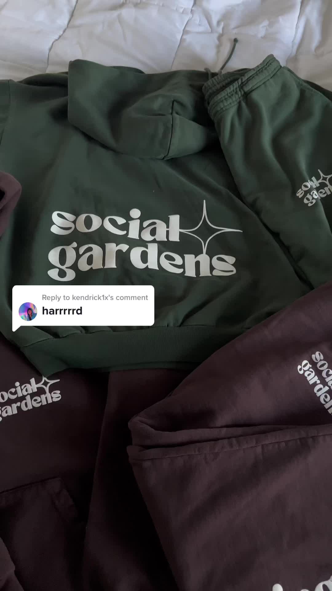 Replying to @kendrick1x only 2 more days until we release the matching sets in green and brown! #matchingsets #comfystyle #socialgrdns
