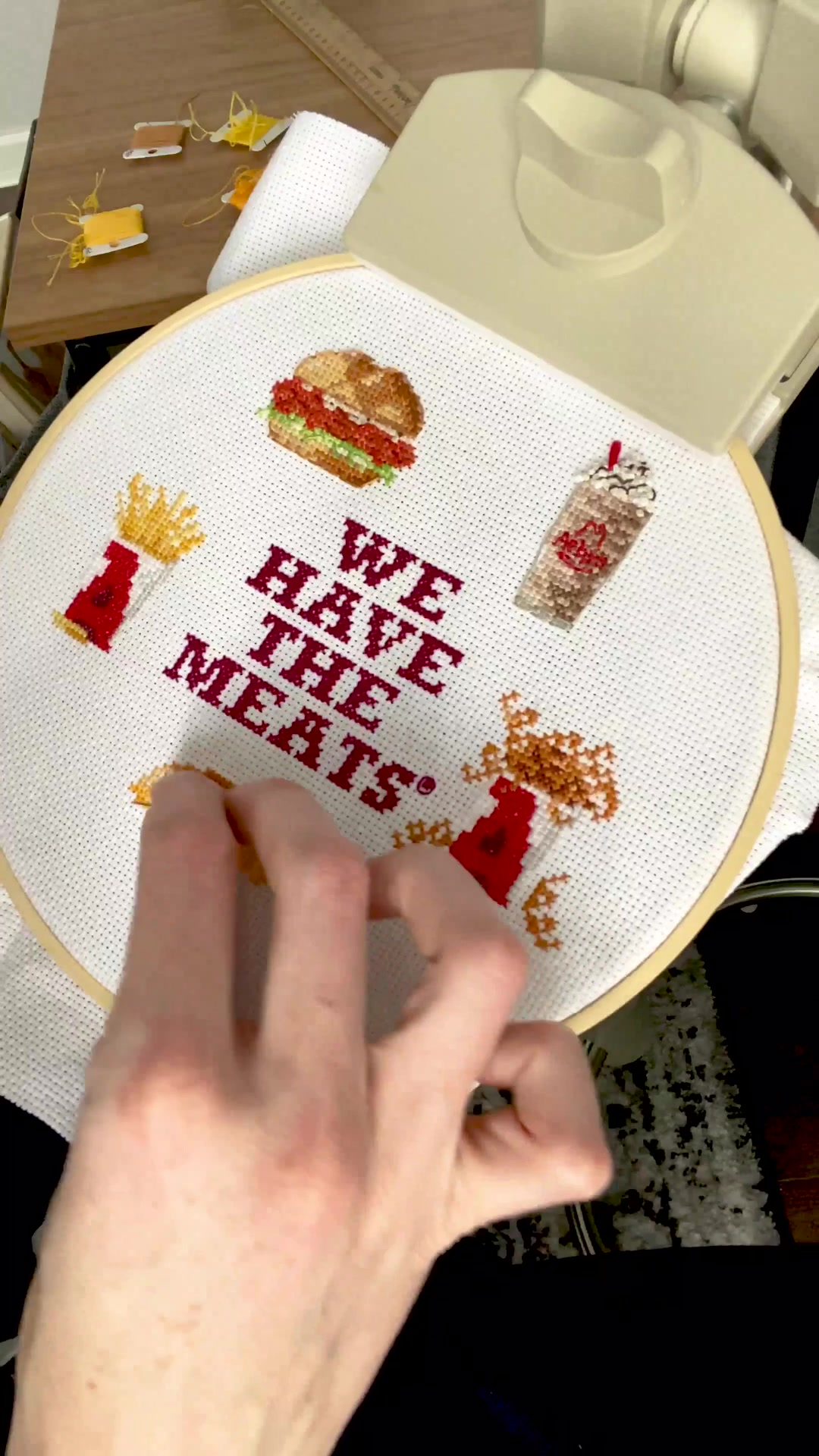 We have the meats and @leannamakesstuff has the 🔥 cross-stitch skills #arbys #crossstitch #xstitch #embroidery #craftingtiktok #crafty #knit #fyp