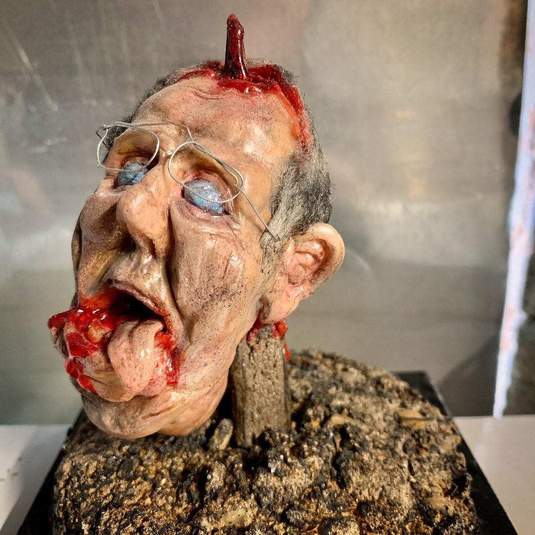 I wanted to combine carpentry and sculpting so this is Mitch if he fell on a stick. Also, the base is wood. Also, I didn’t include a spine for obvious reasons. #fuckmitchmcconnell #fucktrump #mixedmedia