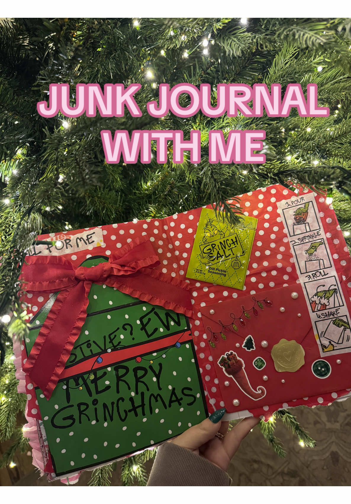 Junk journal with me a super quick spread using the grinch meal from McDonald’s and a Christmas card envelope. Shaker fries 🍟 get a 6/10 #junkjournal #junkjournalcommunity #junkjournalideas #junkjournalwithme #chicago