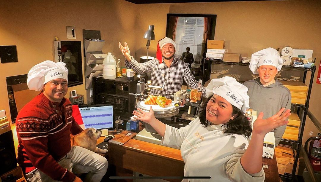 Hereโs a little BTS shot from a holiday promo video we just shot. Shoutout to @sweetlilyla for the excellent croissants / stage props!