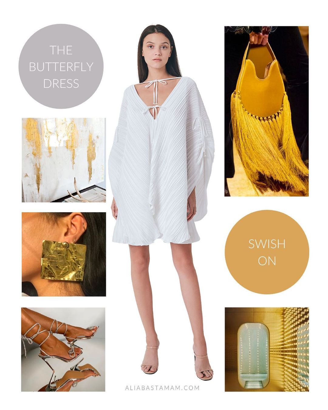 Get your swish on in The Butterfly Mini Dress and take it up a notch with gold fever accessories.