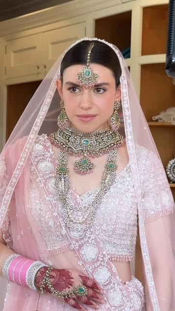 We created a soft and luminous makeup look in delicate pink tones to complement her stunning rose lehenga, while staying true to the natural beauty and softness she loves.