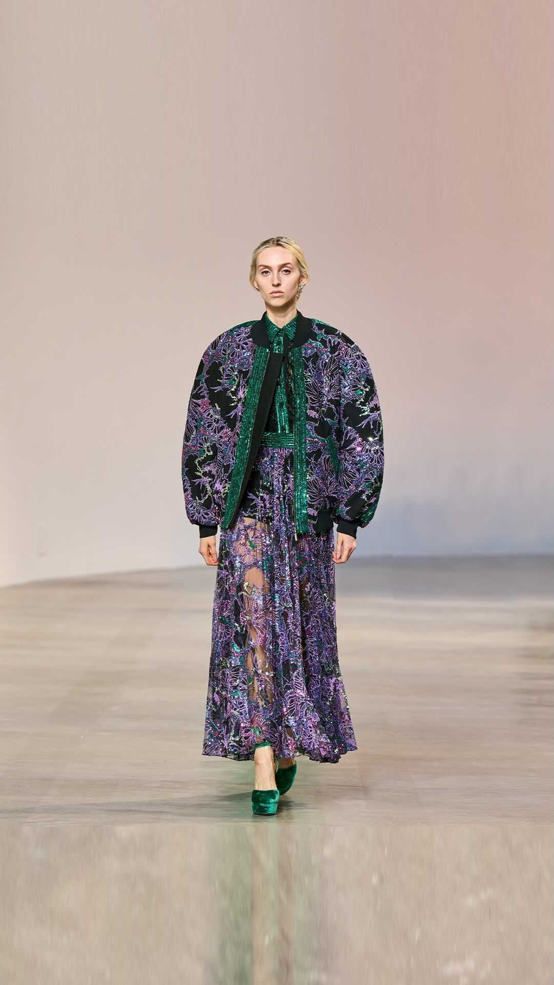 Multi-colored contrasting sequins bring whimsicality and enhance the feminine silhouette Shop the ELIE SAAB Ready-To-Wear Fall Winter 2022 online and in boutiques