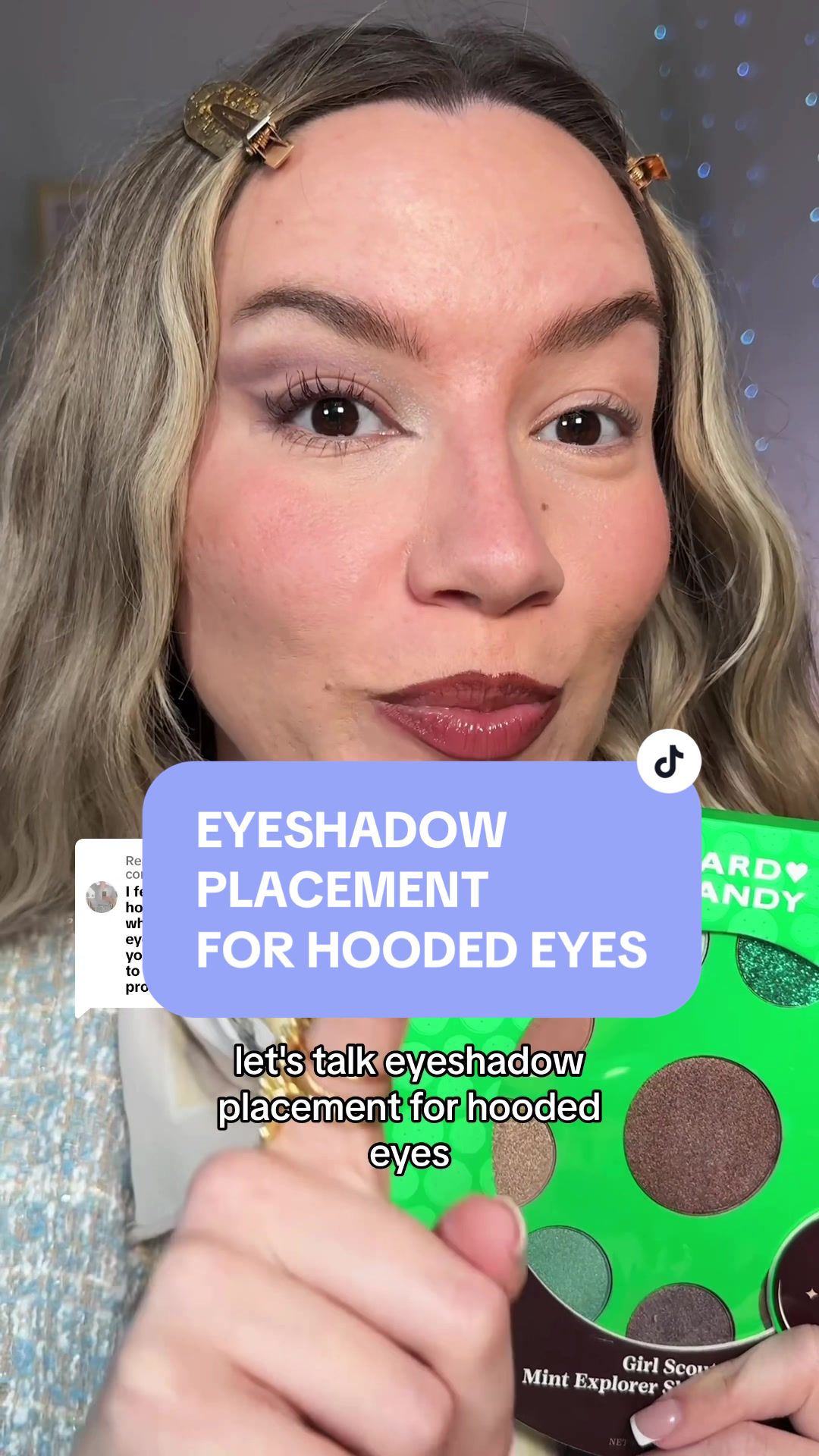 Replying to @dance_roxanne1 ✅EYESHADOW PLACEMENT FOR HOODED EYES✅ Would you wear this look!?️ Products I used: @Juvia’s Place eye base @Laura Mercier Cocoa liner USE CODE ANASTASIA20 @Hard Candy x Girl Scouts palette and mascara @Pat McGrath Labs undereye powder to set the lid #eyeshadowtutorial #hoodedeyes #hoodedeyesmakeup #makeuptutorial #makeup #makeuptips