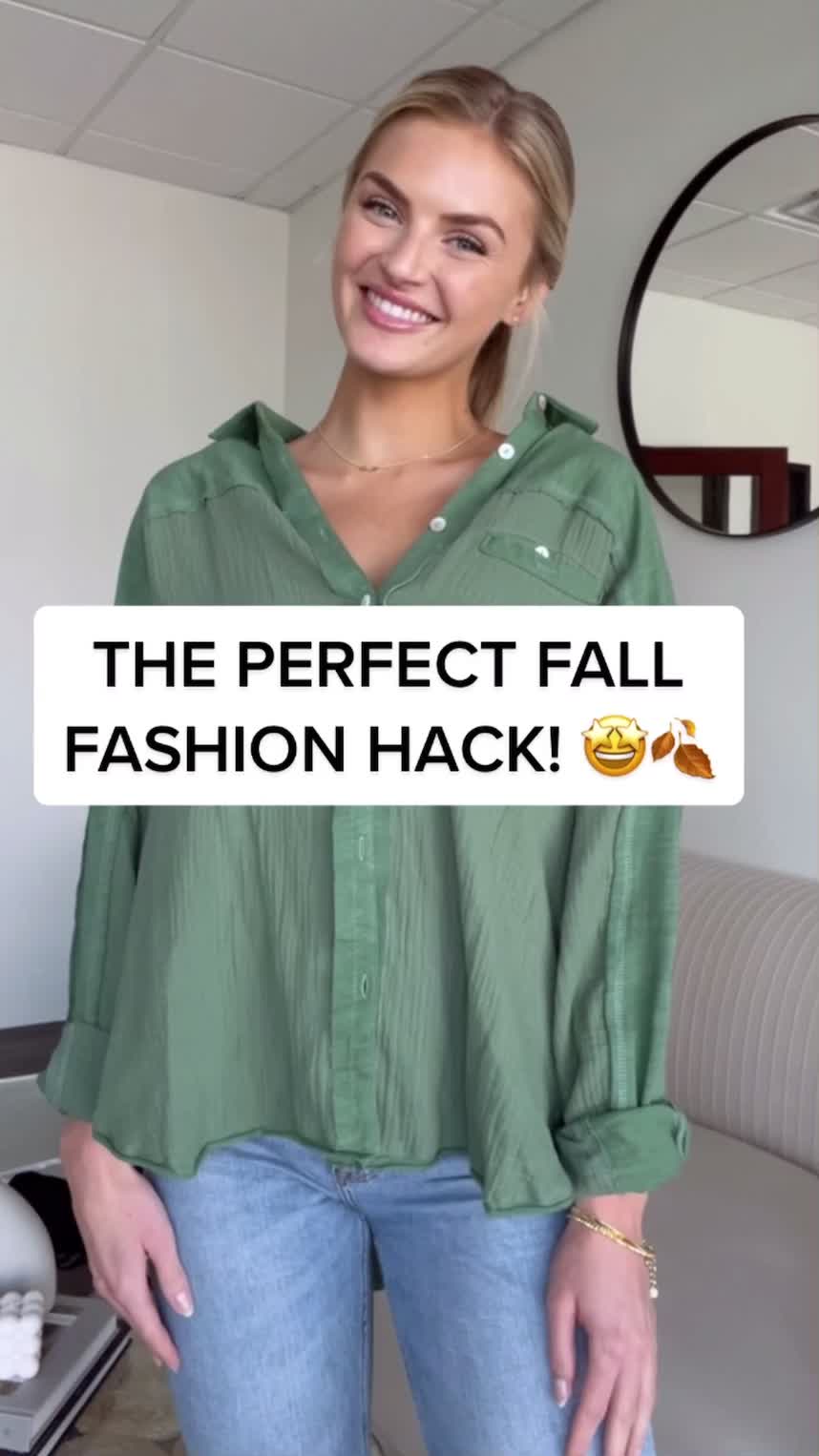 Are you as excited for fall as we are?! ⛅️🍂 #fashionhack #buttonup #summertofall #fallstyle #falltrends #stylehack