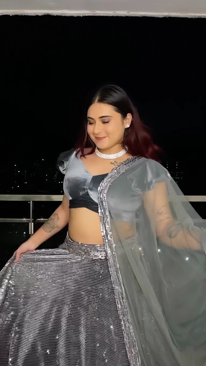 Our Grey sequence Lehenga paired with a Grey velvet top, a combination perfect for any occasion or festival! ✅
