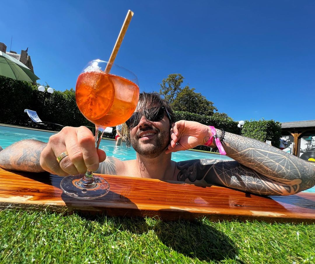 Remembering the ultimate summer festival vibes at @vandbfest last week!🤘🏻☀️ Not only did we get to play an amazing show in front of a crazy ass crowd, but the backstage of the festival was a freakin castle with a pool area and a cocktail bar! No biggie😂🙏🏻🥵 Swipe left to see le château and the level of relaxation we had throughout the day! I love france!❤️🫶🏻