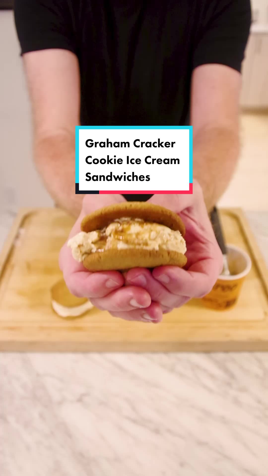 Graham Cracker Cookie Ice Cream Sandwiches with Marco’s Spicy PB Caramel Ice Cream #learnontiktok #tiktokfood #foodtiktok #recipe #food