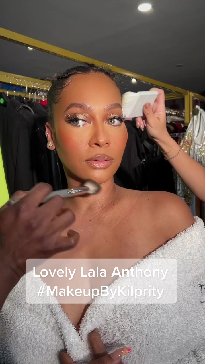 Last night sith The Lovely LA LA Anthony! 🪩 Finishing touches. #lala #lalaanthony #makeup #fyp #makeupbykilprity #anastasiabeverlyhills