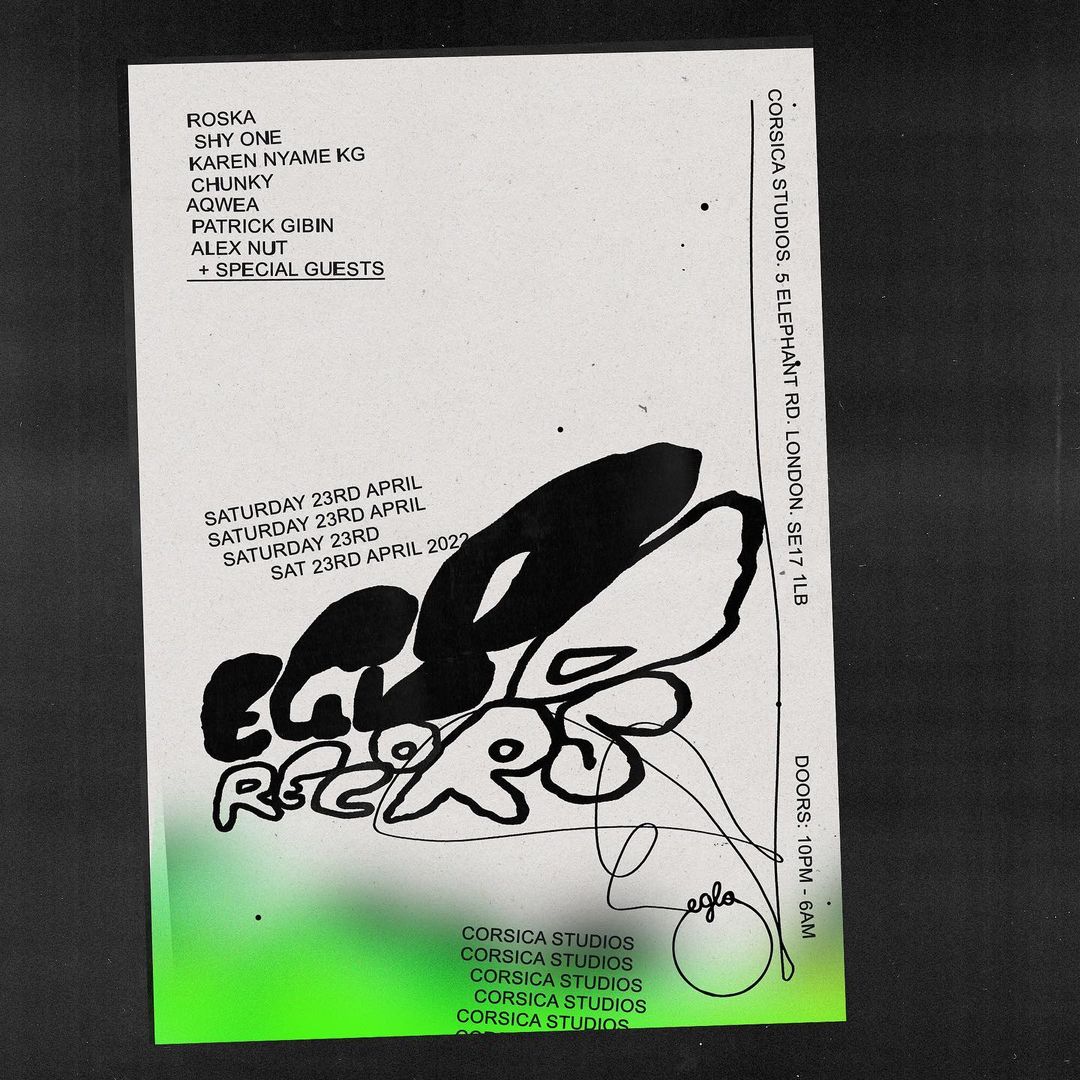 The Eglo Records DANCE returns to @corsica.studios Saturday 23rd April with a stellar line up of baddies including @roskaofficial @shyclart @karennyamekg @_aqwea @mcrchunky @patrickgibin and more! Early bird tickets on sale now via @resident_advisor, link in bio.