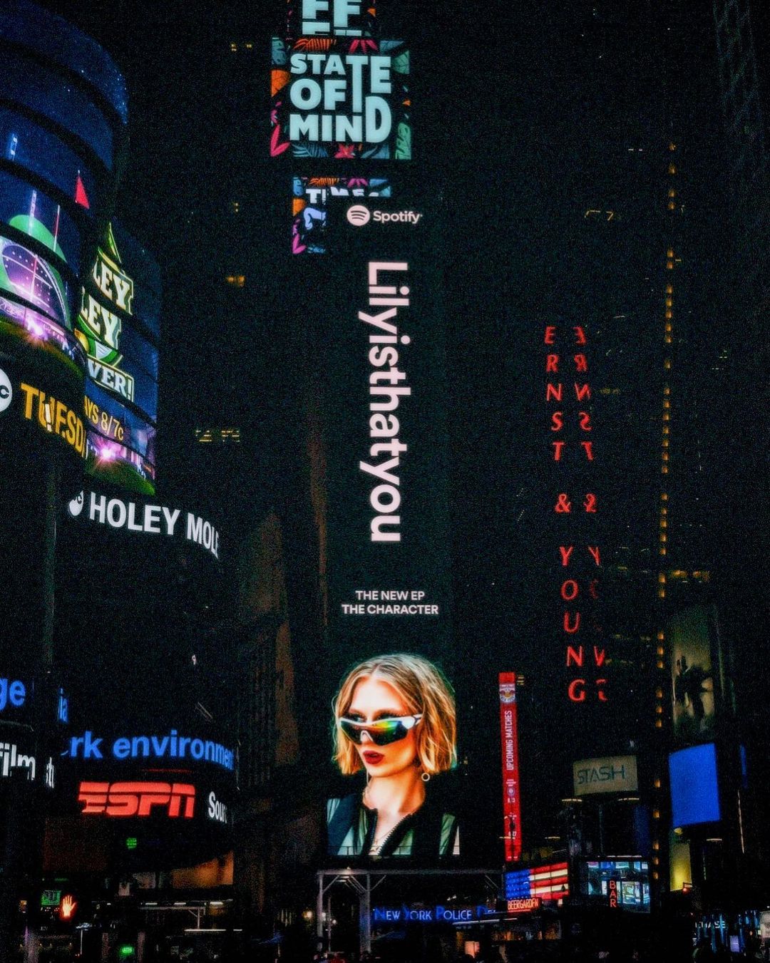 @lilyisthatyou in Times Square, NYC. So proud of this team 🖤✨ #FACESBYADAM