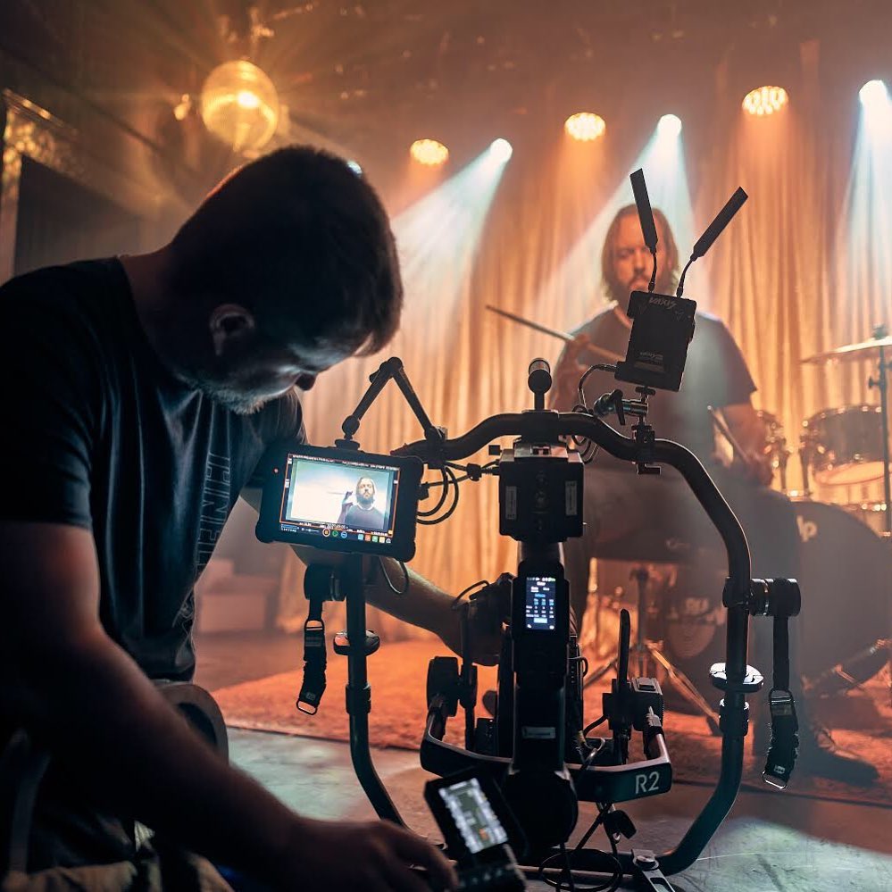 A behind the scenes shot of our @guitarcenter ”Lessons” Commercial camera tests! I was standing in front of the camera for a change. Great action photo by our talented director @kevsteele of me and superstar DP @joshausley_dp testing the slow motion and shutter angles on the @arri Alexa Mini 4K to get the magic combination. Josh is using the Ronin 2 gimbal to get a smooth shot and I’m about to drop the drum sticks for the third time. 🤣 Just like with music lessons, practice makes perfect. 🎥