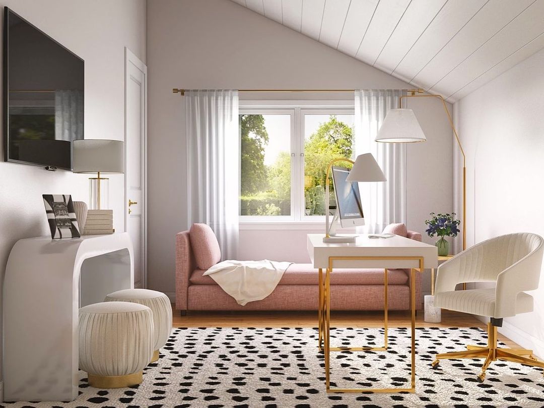Get you a designer who can do both! Broke away from my modern rustic roots to create this Femme Den in the attic for one of my favorite clients!