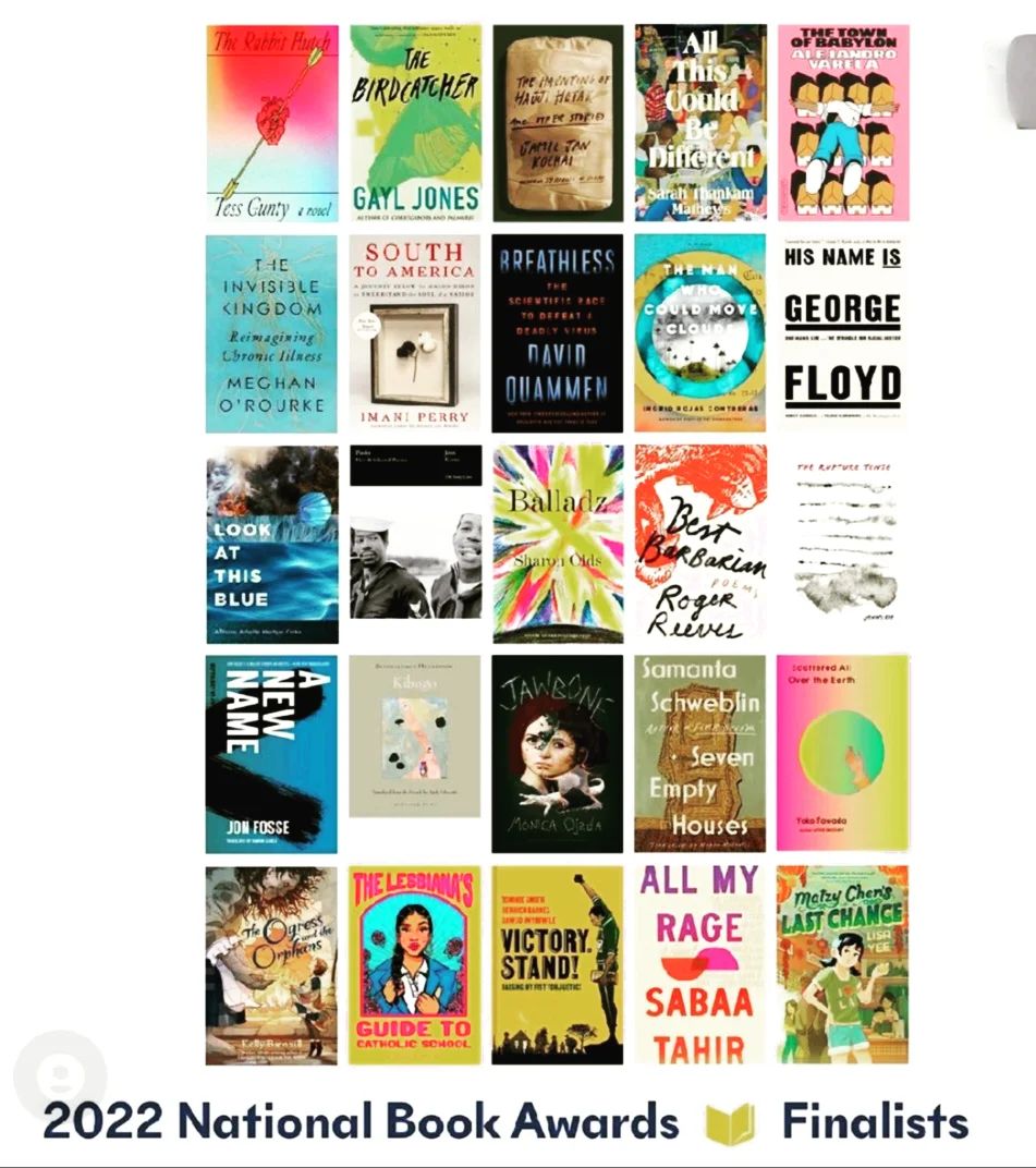 Just announced! The five finalists for this year's National Book Awards for fiction, nonfiction, poetry, translated lit, and young readers. Congratulations!