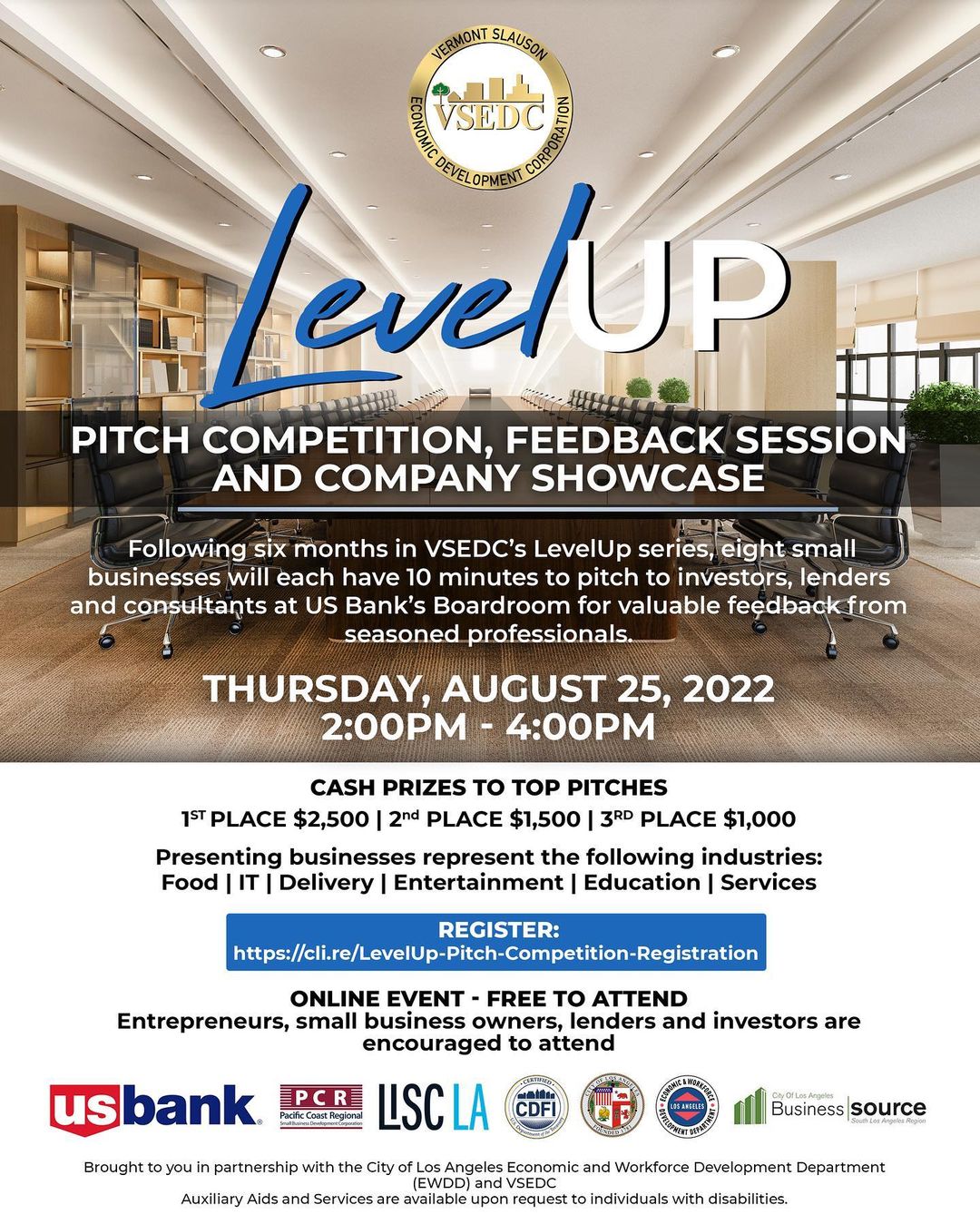 Searching for minority businesses to support? Join us for the culmination of our LevelUp program August 25 from 2-4 PM, which is pitch competition, feedback session and company showcase all rolled into one.