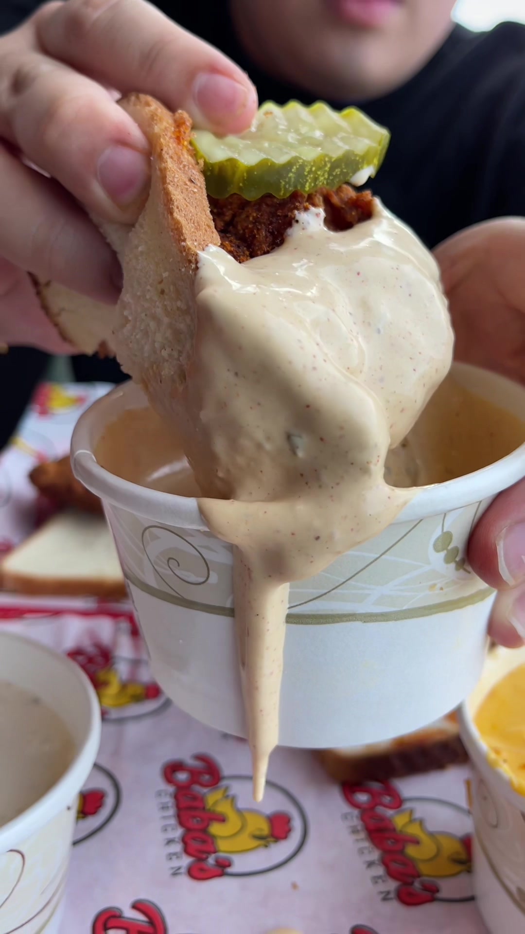 Who else needs more sauce 😉👇🏻? #friedchicken #saucy #babasfriedchicken #riverside #chickensandwich