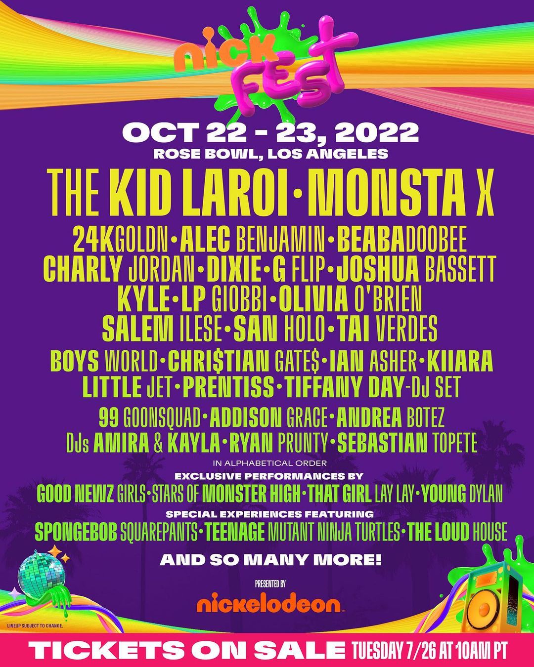 IT’S HERE!!️ Our lineup is revealed 🔥🔥 Tickets on sale Tuesday, July 26th at 10AM PT. Be sure to sign up at the link in bio to be the first to know when tickets go on sale 😝🕺Who are you most stoked to see this October??