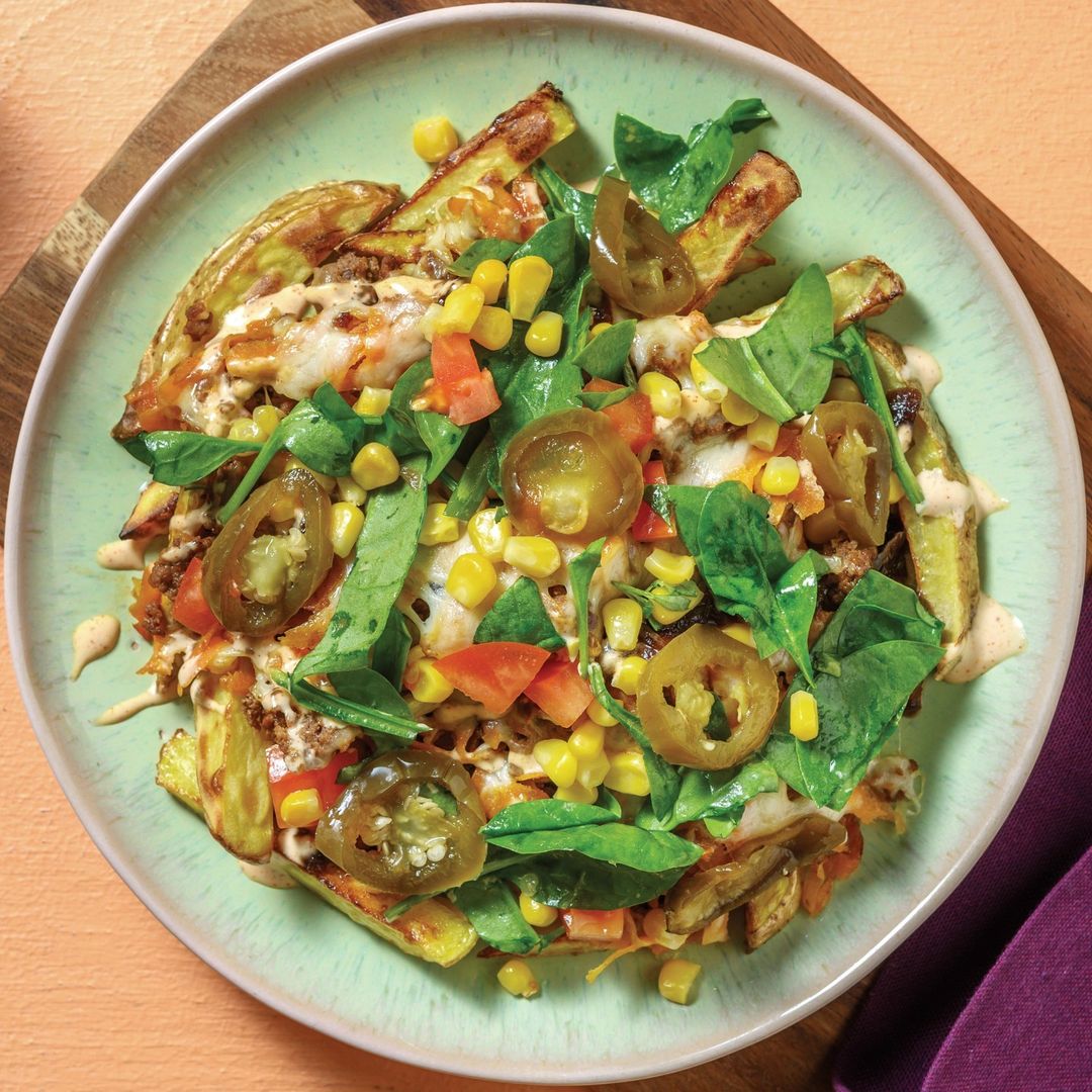 Turn your fries into a legendary main course tonight with this week's Plant-Based Beef Loaded Fries. Piled high with meat-free goodness including gooey plant-based cheese, pickled jalapeños, corn, veggies and All-American spiced plant-based mince, this dish doesn't skimp on flavour.