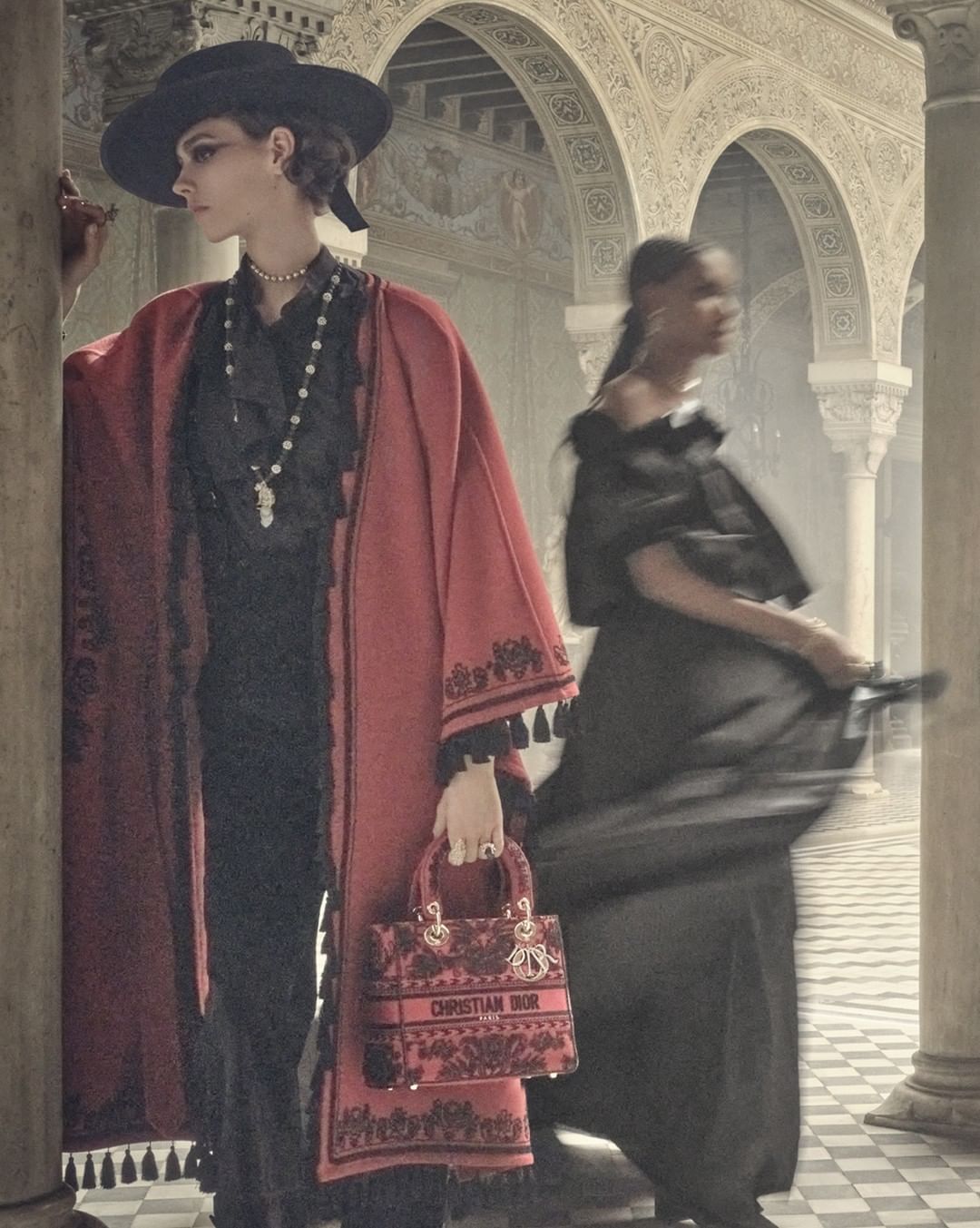 The #DiorCruise 2023 collection highlights @MariaGraziaChiuri's ability to take a theme - in this case southern Spain - and to interpret it through a truly contemporary prism in a way that meshes imperceptibly with the House’s own identity. The embroideries edging a fringed cape-coat translate naturally to a #LadyDior bag, in the same way that embellished tailoring with equestrian origins looks totally right with a sharp new take on the traditional Andalusian hat that pairs perfectly with sleek sunglasses, too.