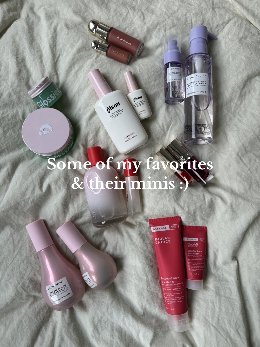 If I like a product, I have the mini version ALWAYS. 🫢 #glowrecipe #gisou #beautyminis #minis #makeupminis #minisize #travelsize #glossier #glossieryou #rarebeauty