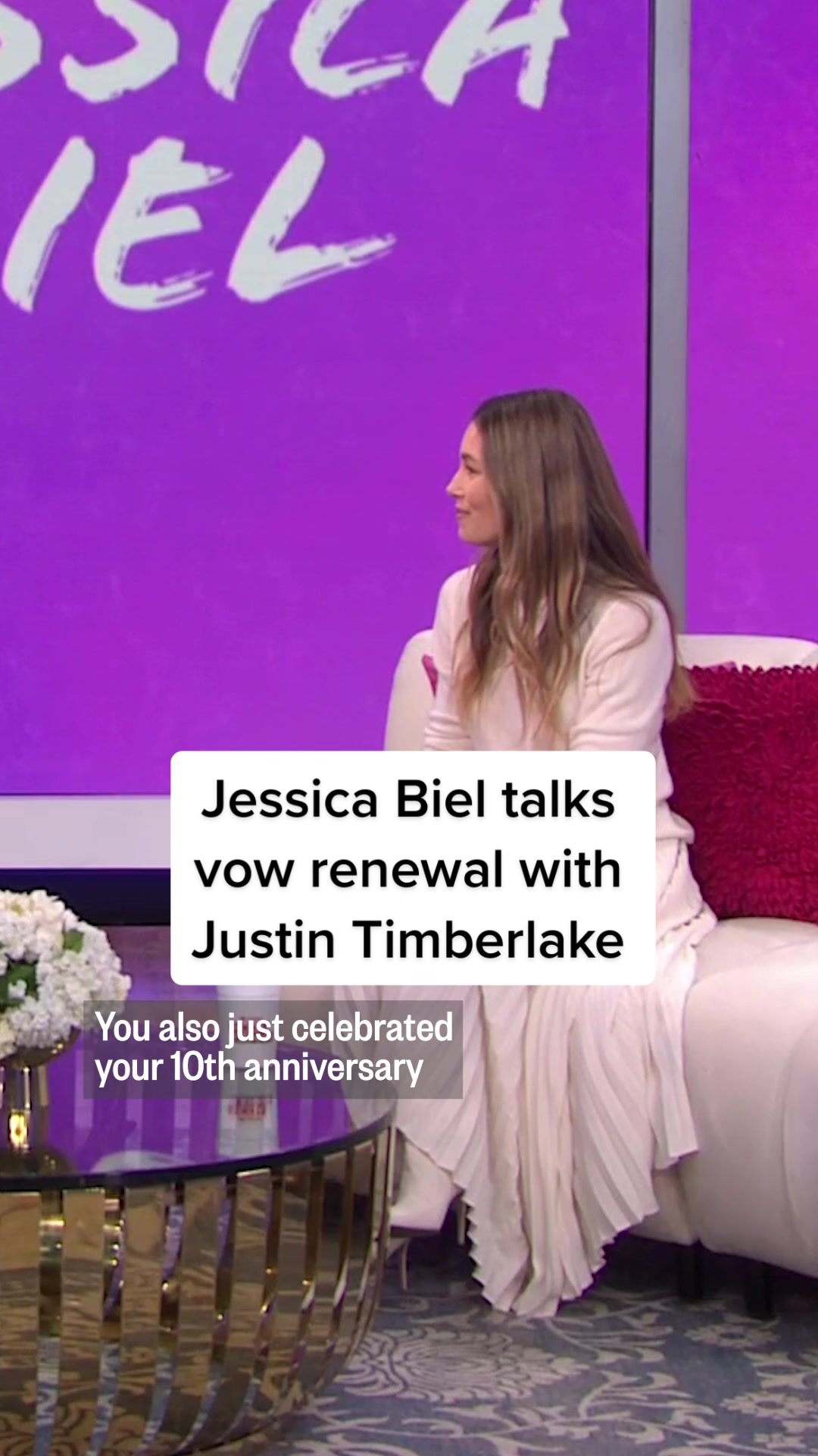 #JessicaBiel shared details from her "very intimate" vow renewal with #JustinTimberlake 🧡. The couple renewed their vows in Italy earlier this year in honor of their 10th anniversary, but the "Candy" star wants everyone to know they didn't go crazy putting on a big shindig for the milestone! #HodaAndJenna