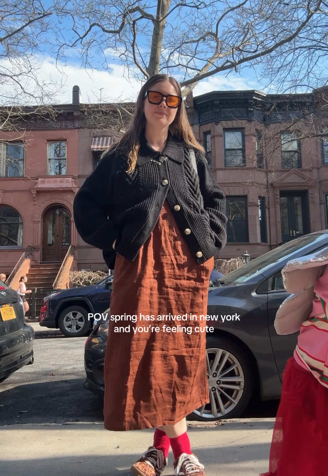 Spring is here 🌸 feeling cute in my @onequince linen dress and collared cardigan. We're off to the park to enjoy this sunny day! #BrooklynMom #NYCvlog #QuincePartner 🌷 Use Quince code INFG-25BROOKESHARKEY10 for a discount!