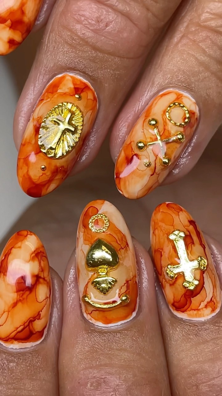 All of @dymenails new products are launching today at 3pm PST! Be sure to check it outš§” #marblequeen #marbleinks #marblenails #orangemarblenails #dymenails #summernails #7 #nailtutorial
