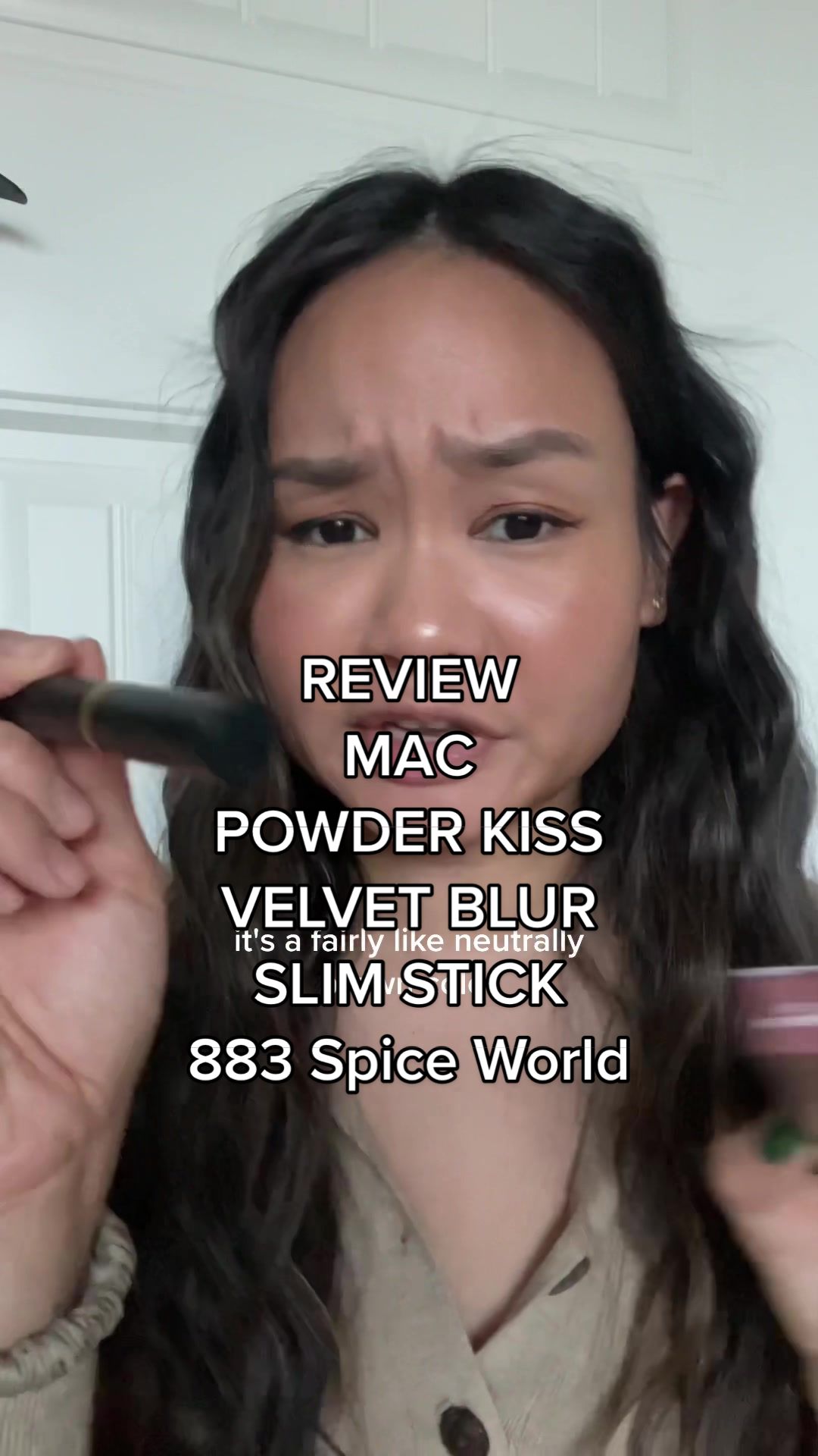 Shade made my skin look a little ashy, but surprisingly faded really nicely! 💄 @maccosmetics #maccosmetics #lipswatch #productreview #beautytok #powderkisslipstick #powderkissvelvetblurslimstick #883spiceworld #firstimpressions