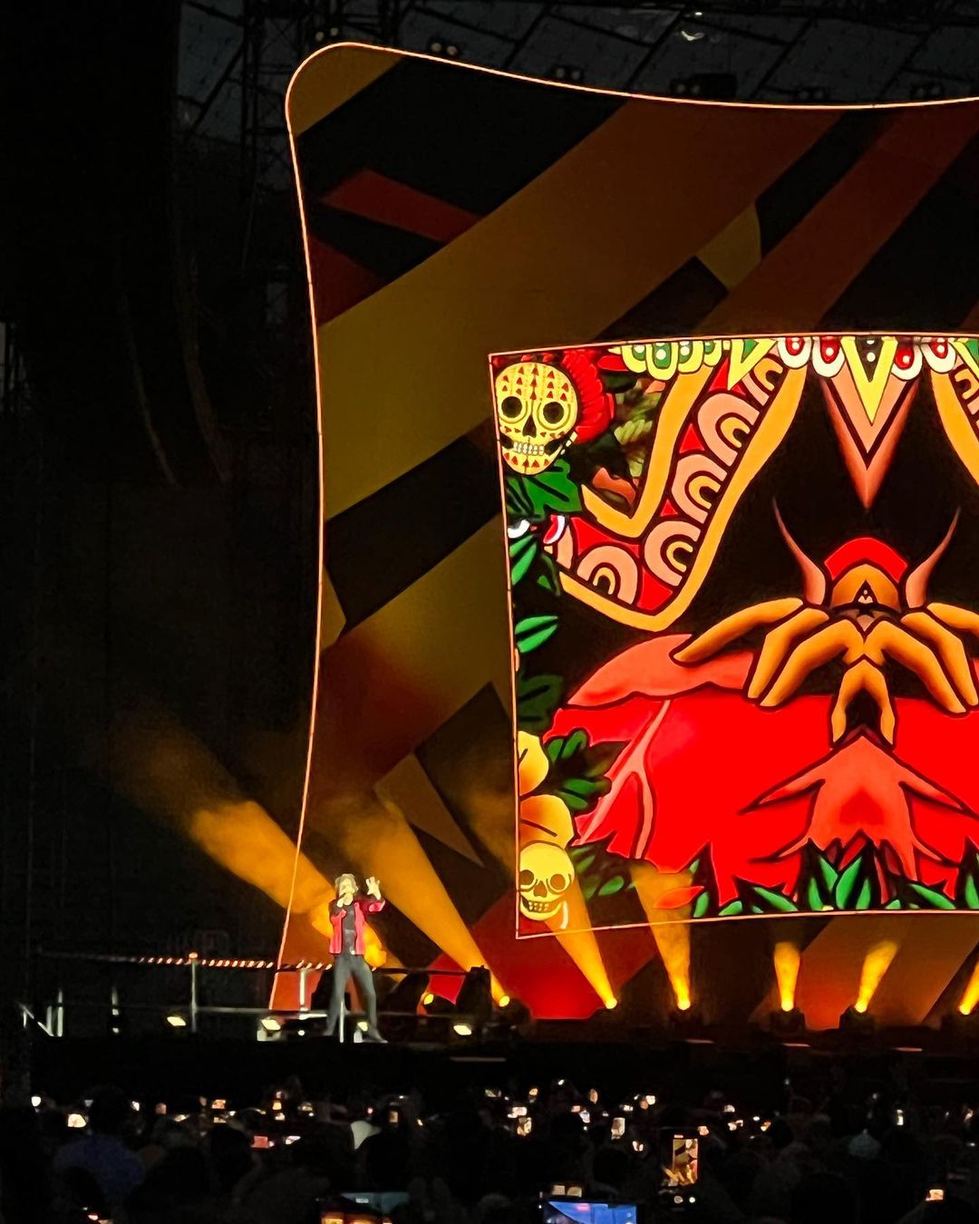 Es hätte unzählige Gründe abseits des Regens gegeben, sich die Stones nicht anzuschauen oder sich die Laune vermiesen zu lassen: Ticketpreise von 150€ aufwärts. Fan-Shirt: ab 40€. Bier: 6€. Und alles Cash, Kartenzahlung ist im Millionendorf weiterhin Fremdwort. Aber die Preise dürfen einen bei der vielleicht letzten Chance nicht interessieren. Dass die Toiletten meilenweit vom Stadioninneren entfernt sind und in ihrer Zahl viel zu gering - geschenkt. Und dann macht es einen natürlich traurig, dass Charlie nicht mehr am Schlagzeug sitzt. Und trotzdem, mit den ersten Chords, die aus den riesigen Boxen schallen, ist jeder Zweifel verschwunden.