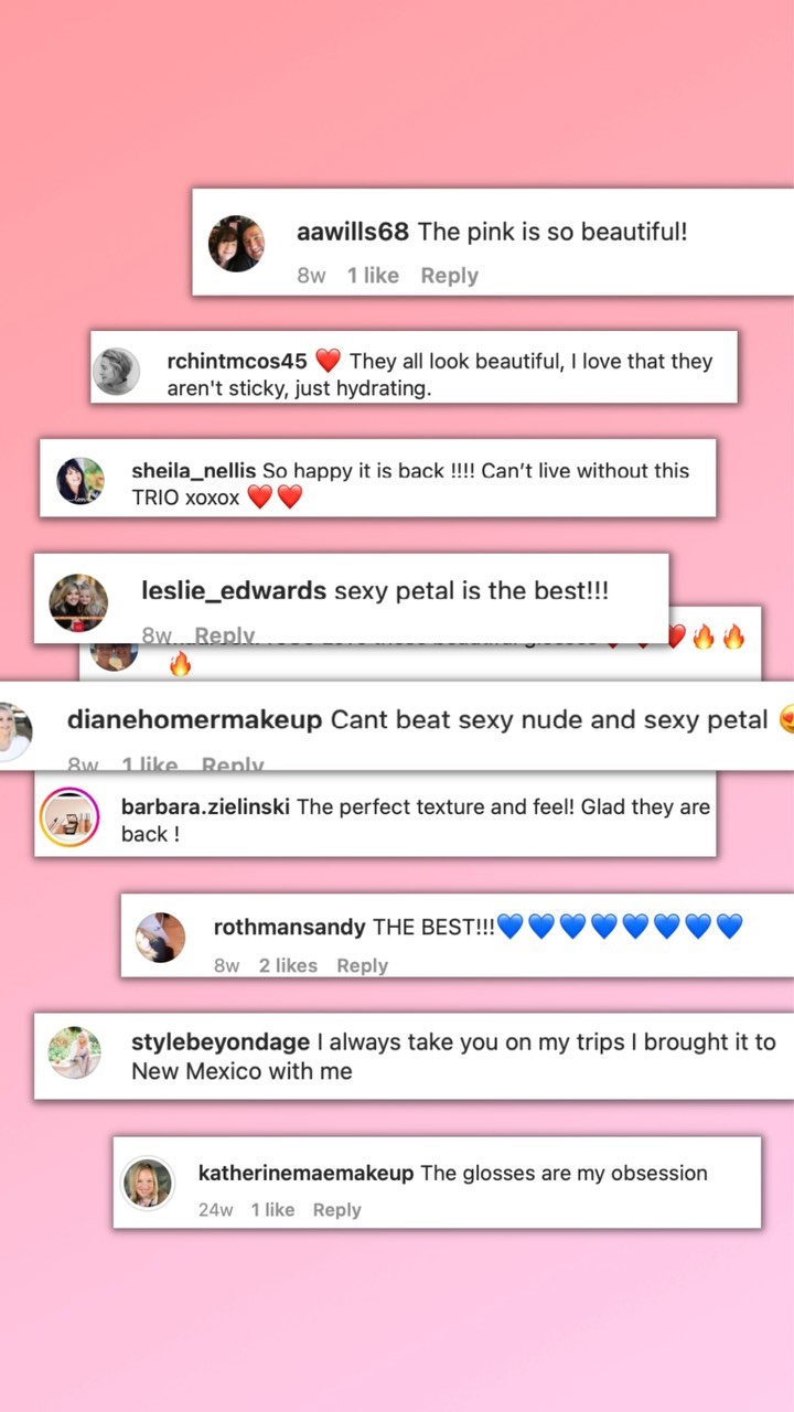“Wow!! I love this lip gloss, its perfection. Hydration, not sticky, plumping. Makes my lips shiny and beautiful...” Arlene, Age 46