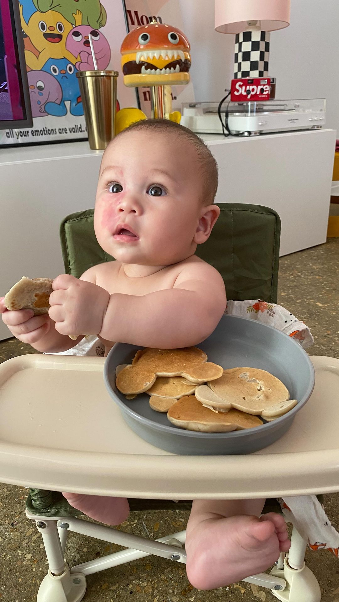 Super easy recette de pancakes vegan pour bébé 6m+ (et papa et maman 👀) trouvé sur le compte de @cuisinezpourbebe 💖