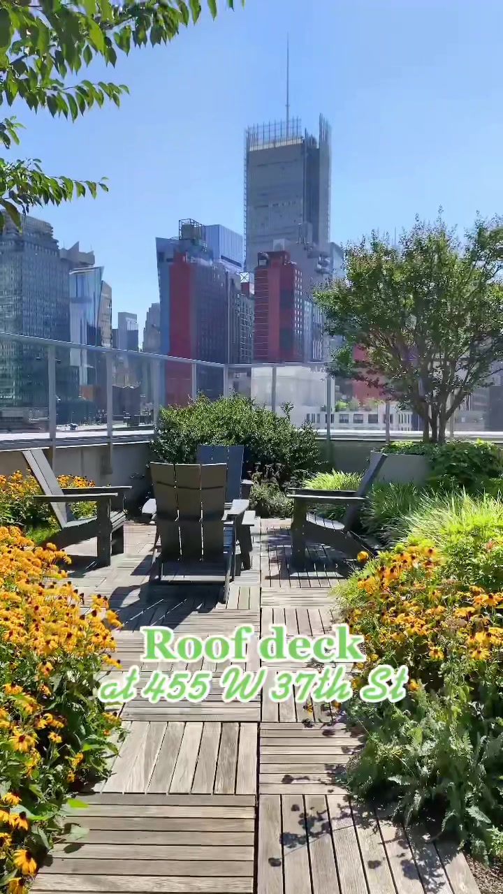 Soak in the summer sun from the roof deck at 455 W 37th St. 🌞 #nyc #nycapartment #nycrooftop #nycapartmentcheck #nycapartmentlife #nycapartmentsearch #newyorkcity #hudsonyards #nyclife #nycliving #manhattan