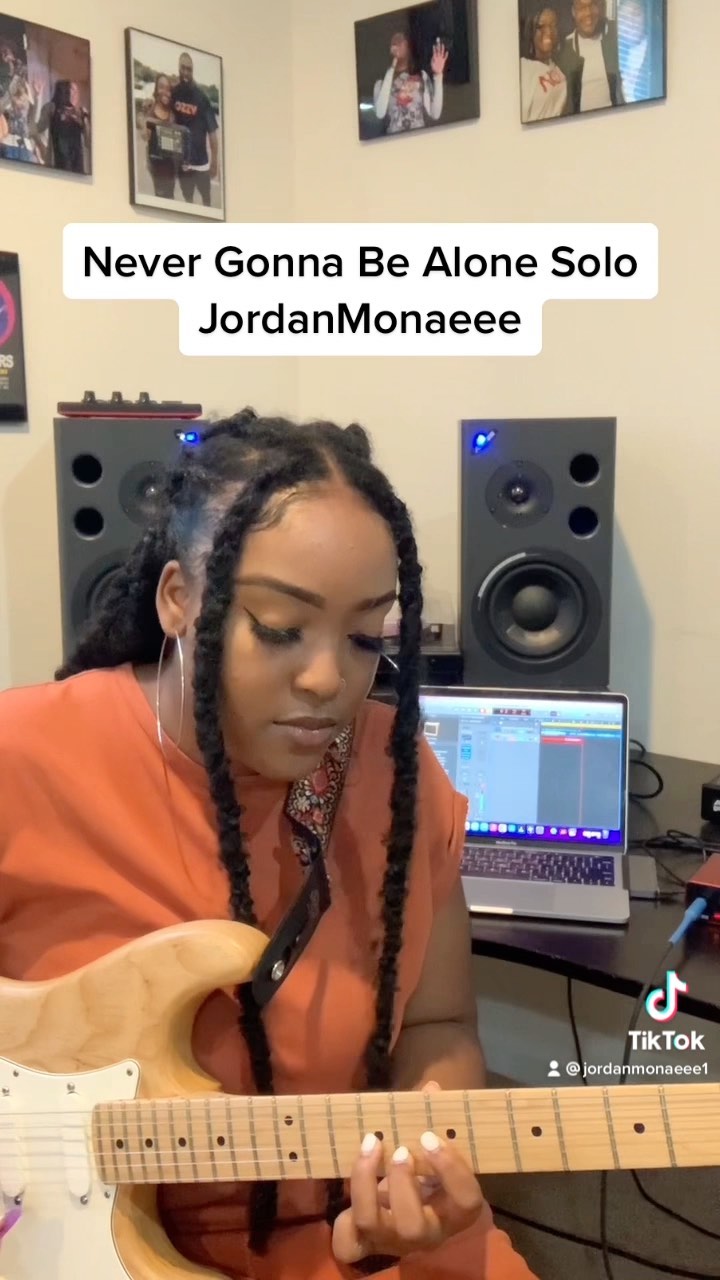 As soon as I saw this challenge, I got up to go record😭still my favorite song❤️ @jacobcollier @lizzymcalpine @johnmayer #guitarsolo #nevergonnabealonechallenge #jacobcollier #lizzymcalpine #johnmayer #producer #guitar #fender @fender #stratocaster #logicprox