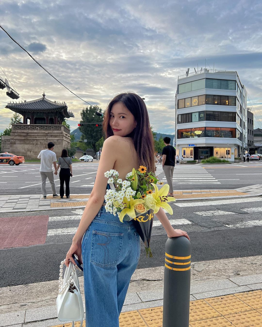 꽃가방 매고 눈누난나 신난 여자 꽃다발도 간지나게 만드는 #꾸까 🖤💛 담엔 나두 원데이 클래스 들어봐야지🌼🌼
