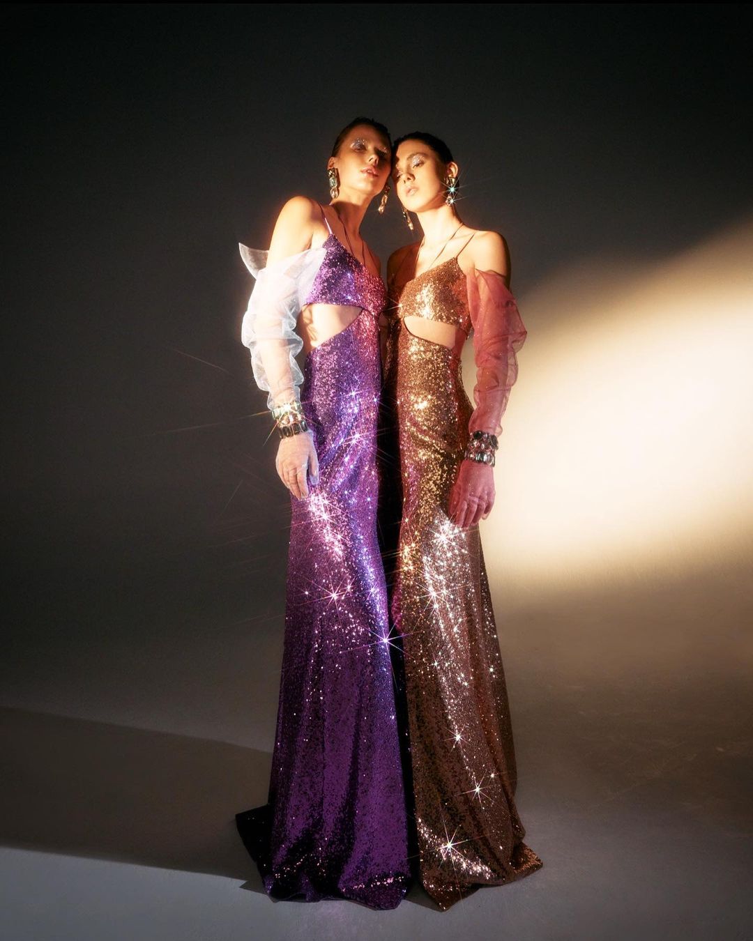 • Two-pieces halter neck sequin gown set