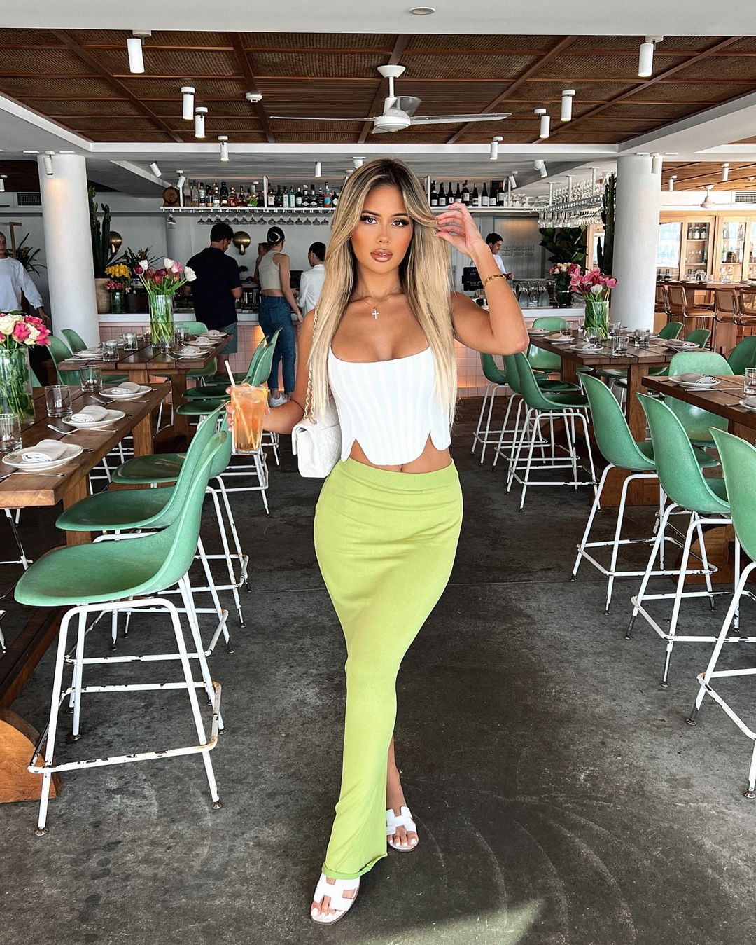 little miss always has to get pics when she’s out to eat xx top & skirt from @whitefoxboutique ❤️