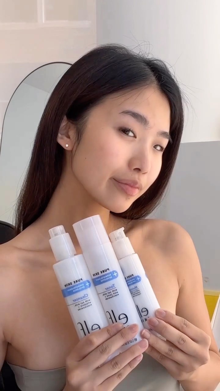 Take a moment for yourself today with e.l.f. SKIN 💙 @ft.angela using Holy Hydration! Makeup Melting Cleansing Balm + our Pure Skin collection for a gentle skin routine with oat milk, niacinamide and ceramides 💧
