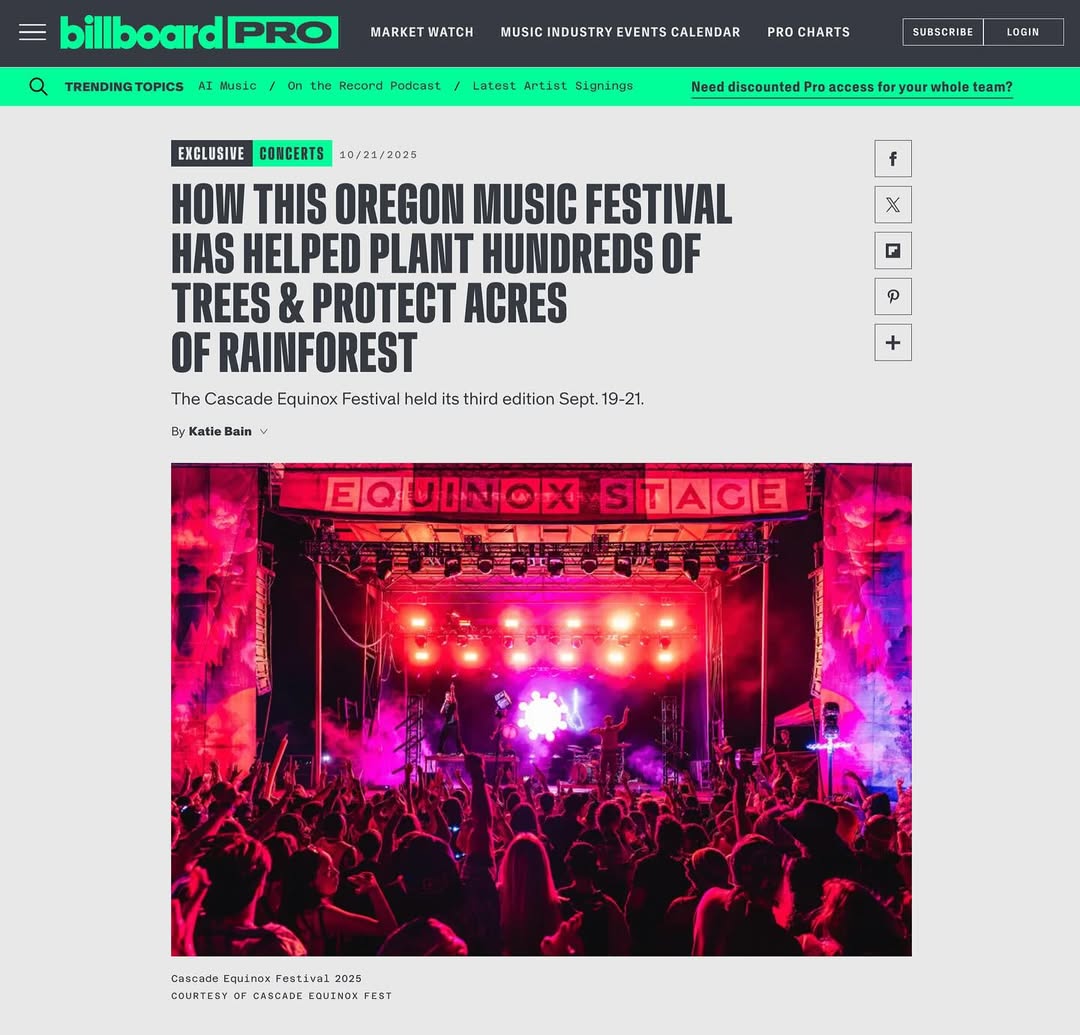 Big thanks to our sustainability partners @earthwin_org and @greendiscogroup for their help with our greening initiatives and shout out to @billboard for shining a light on our efforts. We’re proud to continue to conserve the rainforest and plant native trees in the Oregon, making a difference locally and globally 💚