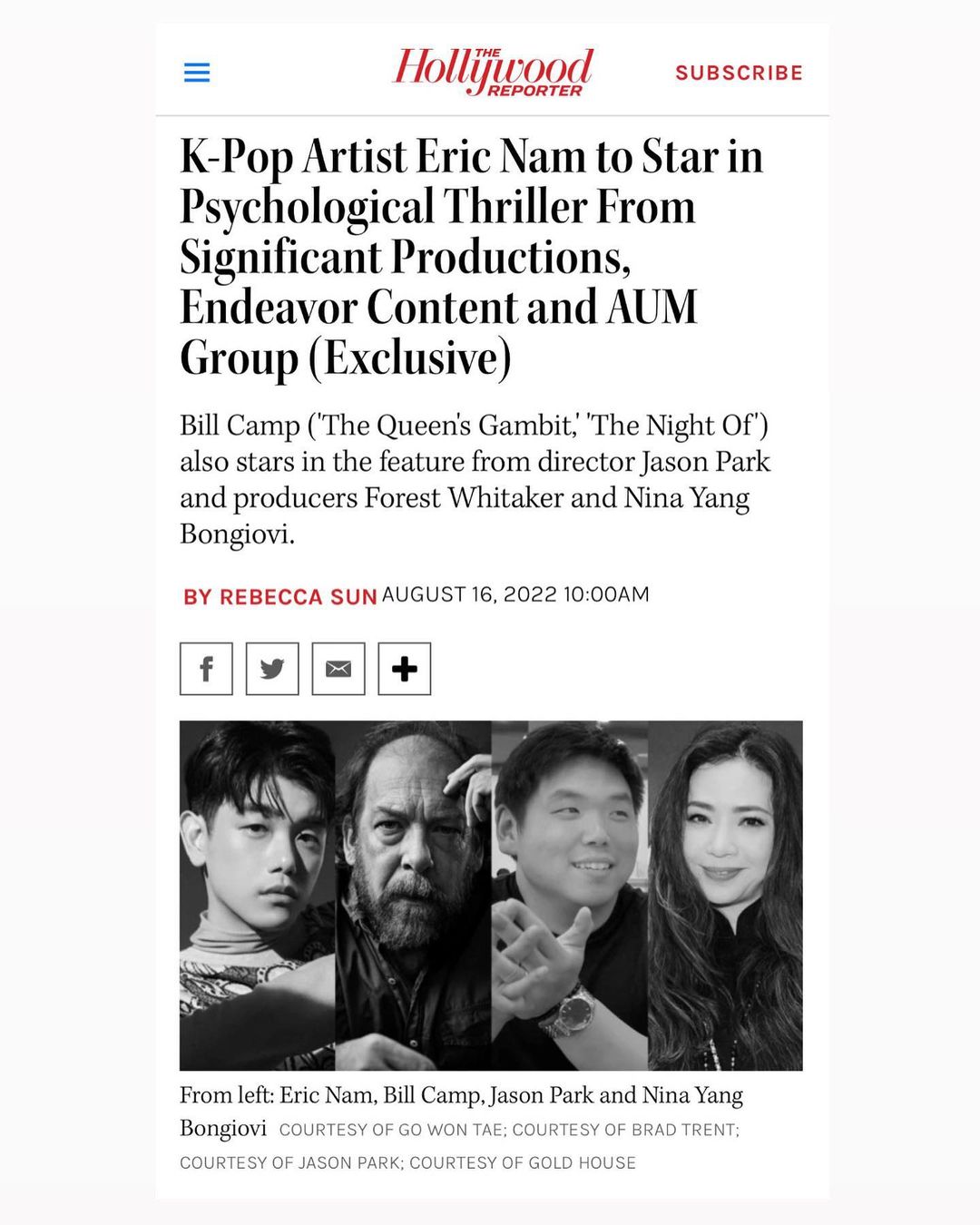 Next up for @AumGroupHQ: TRANSPLANT starring soul brother @ericnam and written-directed by @jasonhpark07 and co-scribed with David J. Lee. Of course, produced by powerhouse @nybongiovi: “Forest and I love working with feature directorial debuts of auteurs, and Jason came with a brilliant screenplay that dives into cultural specificities, yet conveys immense universal appeal,” Bongiovi said in a statement. “All the filmmakers that we’ve collaborated with have continued to shift the paradigm in Hollywood through authentic representation in narratives, and we see Jason having the same exemplary trajectory.”