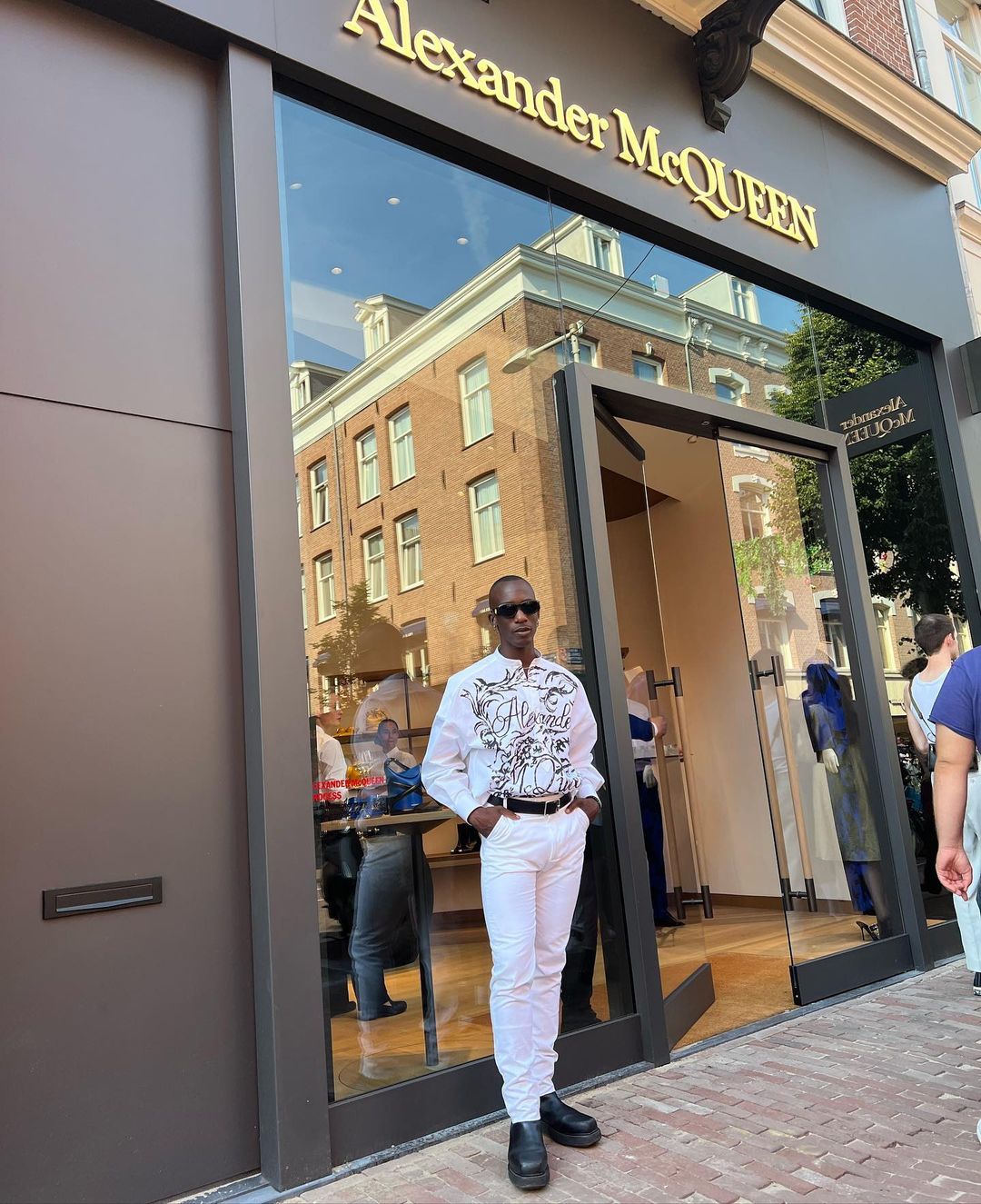 Congrats on your new store opening @alexandermcqueen !🎊 Thank you for having me and making me look 👌🏿❤️ #AlexanderMcqueen #Amsterdam