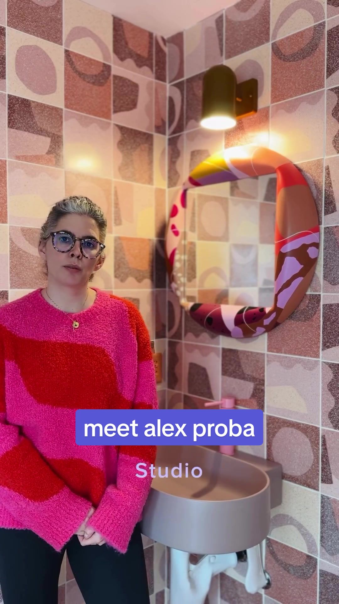 Alex proba is a multidisciplinary artist based in Portland focused on the celebration of color and patterns! When collaborating with @concretecollaborative on her newest tile collection she drew inspiration from her trip to Italy and the food she ate - she also saw this in the @_readytohang puffer mirror when deciding to add it to her bathroom in her signature style 💕 #alexproba #studioproba