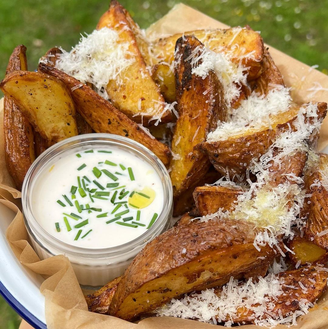 PARMESAN, TRUFFLE OIL & CAJUN CRISPY WEDGES (airfryer!)...with a Lemon Aioli dip! 🧨🤍