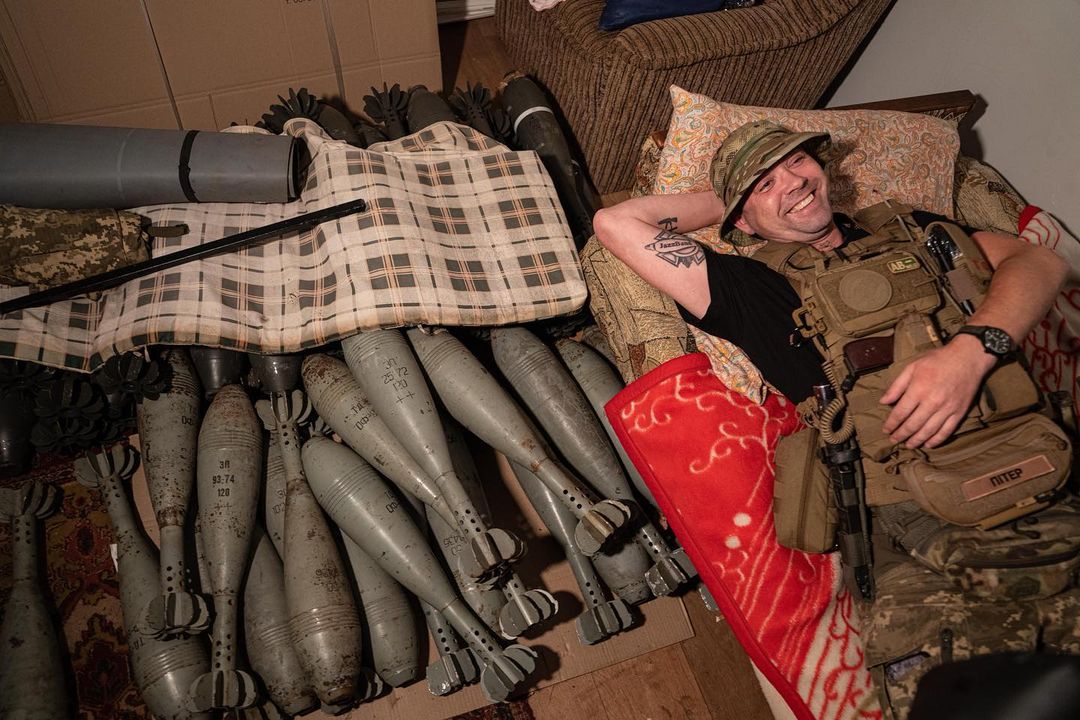 Ukrainian serviceman "Piter" rests on his bed near mortar shells at the frontline in Kharkiv region, Ukraine, Friday, July 22, 2022. #war #ukraine #russia #invasion #mortar #shell