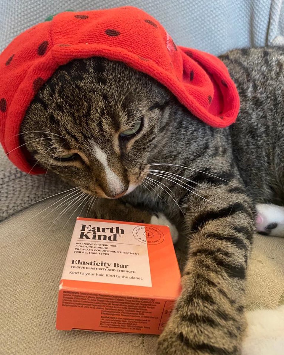 Enjoying a Friday night in, pampering himself with our Elasticity Bar Pre-Wash Conditioning Treatment for ALL Hair Types, and wearing his hair turban while he snoozes 🙈