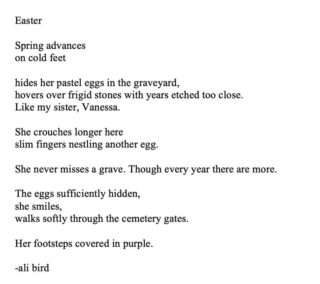Birthday morning but still woke up early, as usual, to write. My stillborn sister Vanessa came through this morning’s poem. I like my birthday in new ways as I get older. I like the spiral of time, of love and forgiveness. I like the chance to live. How it happens over and over. I like my strong body, the feeling of this house of flesh and bones. It sags and pulls in new ways, thanks a lot gravity, but it surprises me with its power and softness too. I’m grateful today. I’m 46.