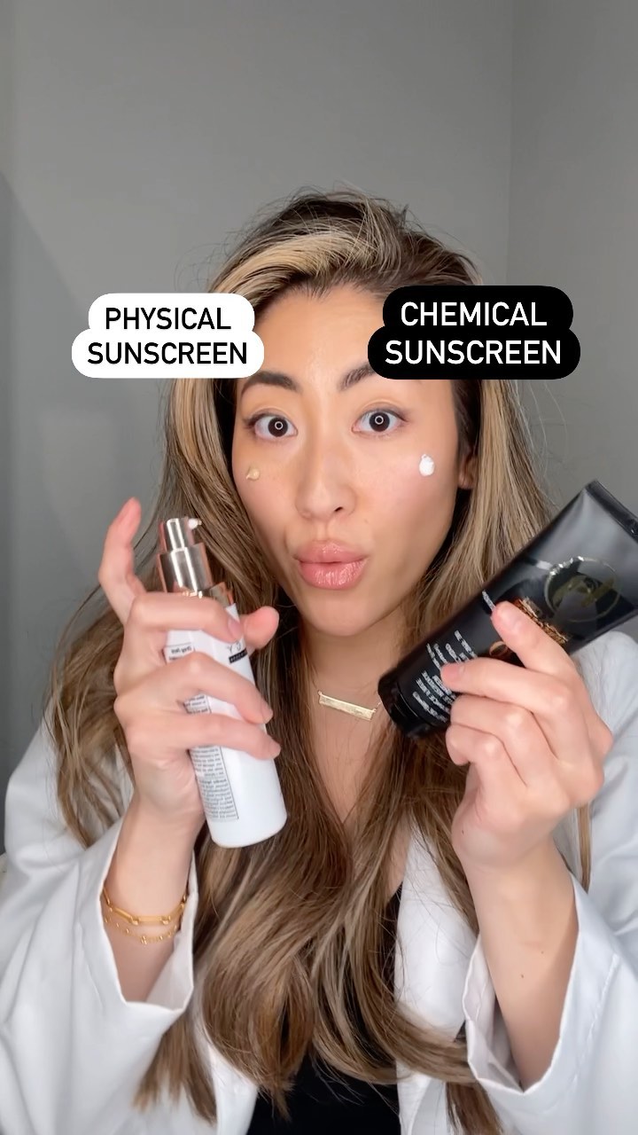 ☀️Physical sunscreens are thicker and can often times leave a white-cast but can be better for those with sensitive skin or heat-activated skin conditions like rosacea. Chemical sunscreens are much easier to apply and more compatible with a skincare-routine as it’s much better with layering. Chemical sunscreens contain organic (don't confuse with organic food) molecules and are not easily extracted in a water filtration system. One molecule that has been used in formulations, Oxybenzone, has been implicated for possibly bleaching the coral reef. Because of the minor blood-stream absorption of chemical sunscreen, I recommend pregnant women and small children not to reapply chemical sunscreen multiple times a day.